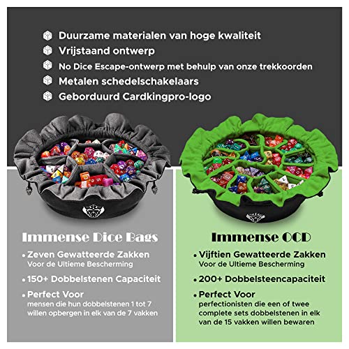 Specification: CardKingPro IMMENSE dobbelsteentas met vakken – Zwart – Capaciteit 150+ dobbelstenen – Ideaal voor hamsteraars van dobbelstenen [gepatenteerd ontwerp]